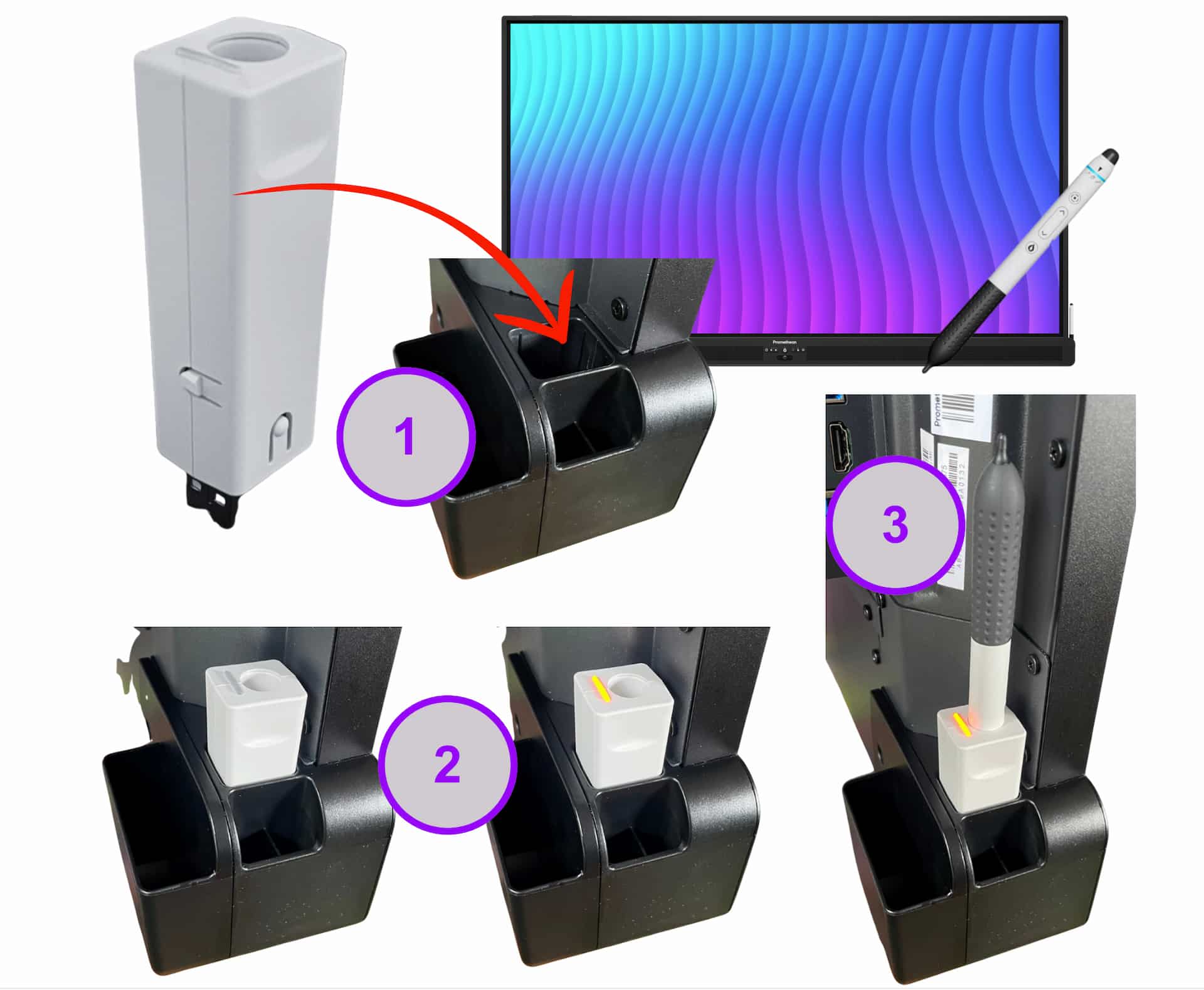 Once you turn your ActivPanel 10 on, a light will illuminate on the dock, showing it’s active and ready to use. Now you’re all set to place the ActivPen 2 into the dock for charging and automatic pairing.