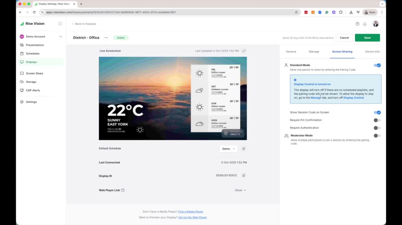 Learn how to enable screen sharing using Rise Vision and...