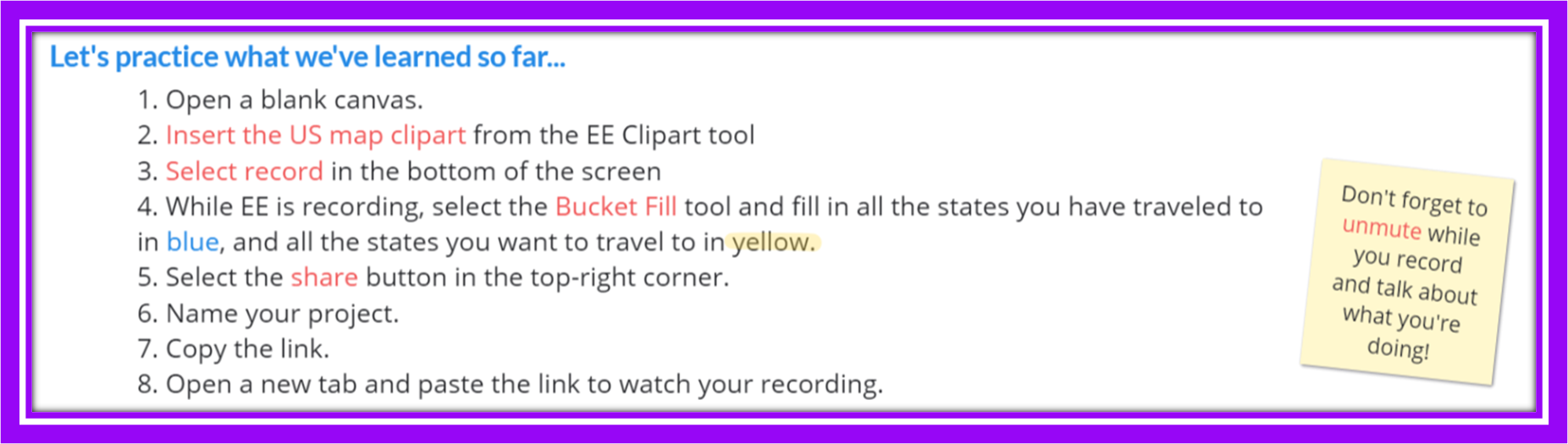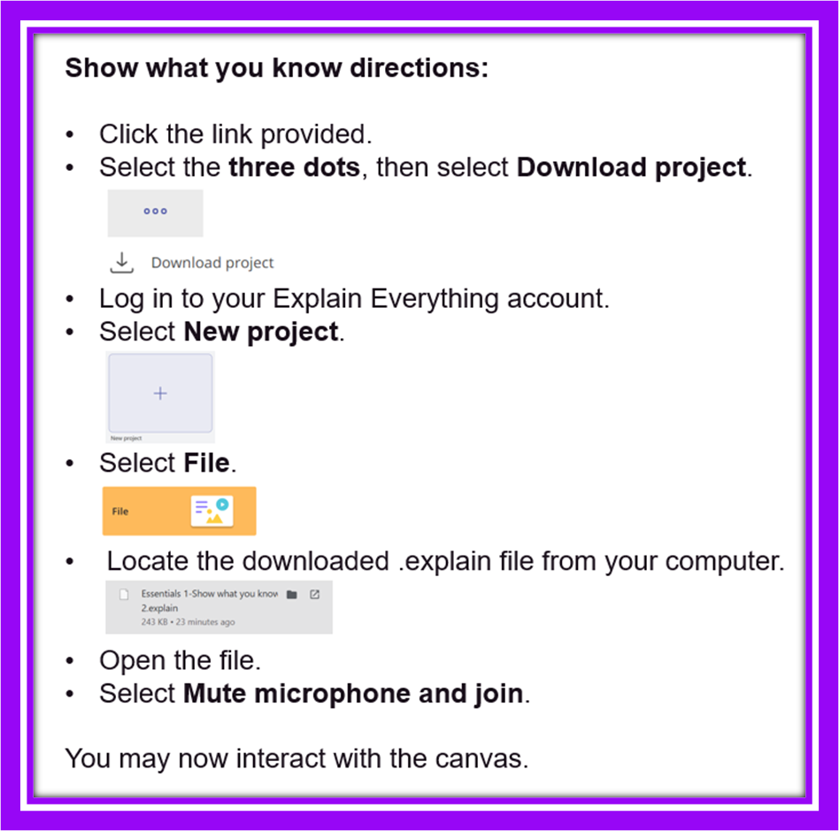 Click the button below to practice your skills in Explain Everything. The activity prompt is displayed both in this course and also within each Explain Everything activity.